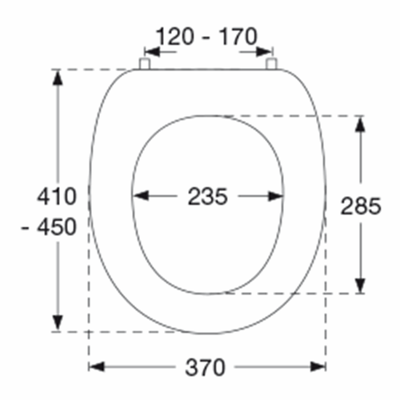 Vaste h.o.h. maat, zitting kan wel van voor naar achter in de juiste positie worden geplaatst * top montage, geen soft close, geen lift-off