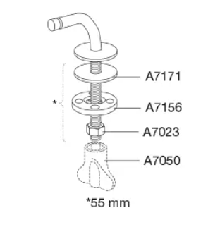 Scharnier kan in A (415 mm) of B (442) positie worden geplaatst Standaard montage
