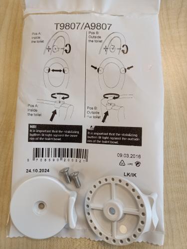 Bevestigingsset voor Magnum en 300 om de deksel aan de zitting vast te maken. Er zit geen schroefdraad in het duroplast, dus er is geen garantie dat de bevestigingsset ook blijft zitten.